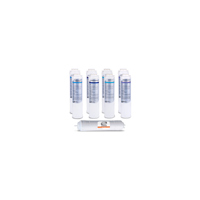 • Cartucho de Polipropileno PP-10F (2 piezas) • Cartucho de carbón activado granular GAC-10F (2 piezas) • Cartucho de carbón activado en bloque CTO-10F (2 piezas) • Membrana de Ósmosis Inversa MEM-50GQ (1 pieza) • Abrillantador T33-10F (1 pieza) |