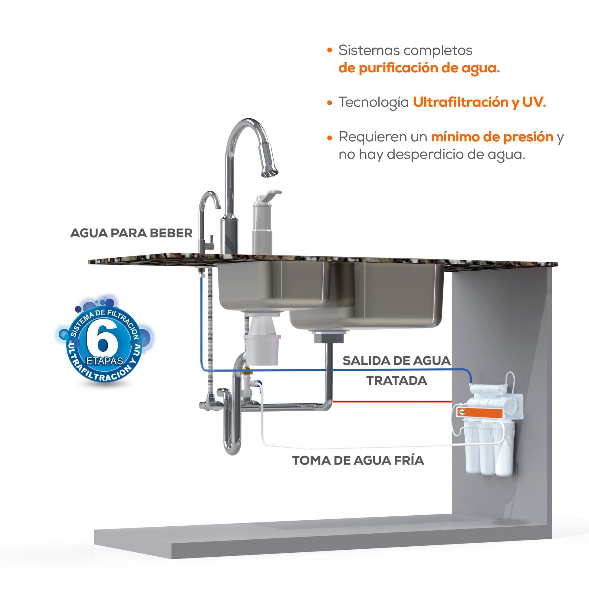 Purificador De Agua EVANS (WP-3) Con Ultrafiltración y Luz UV, 6 Etapas